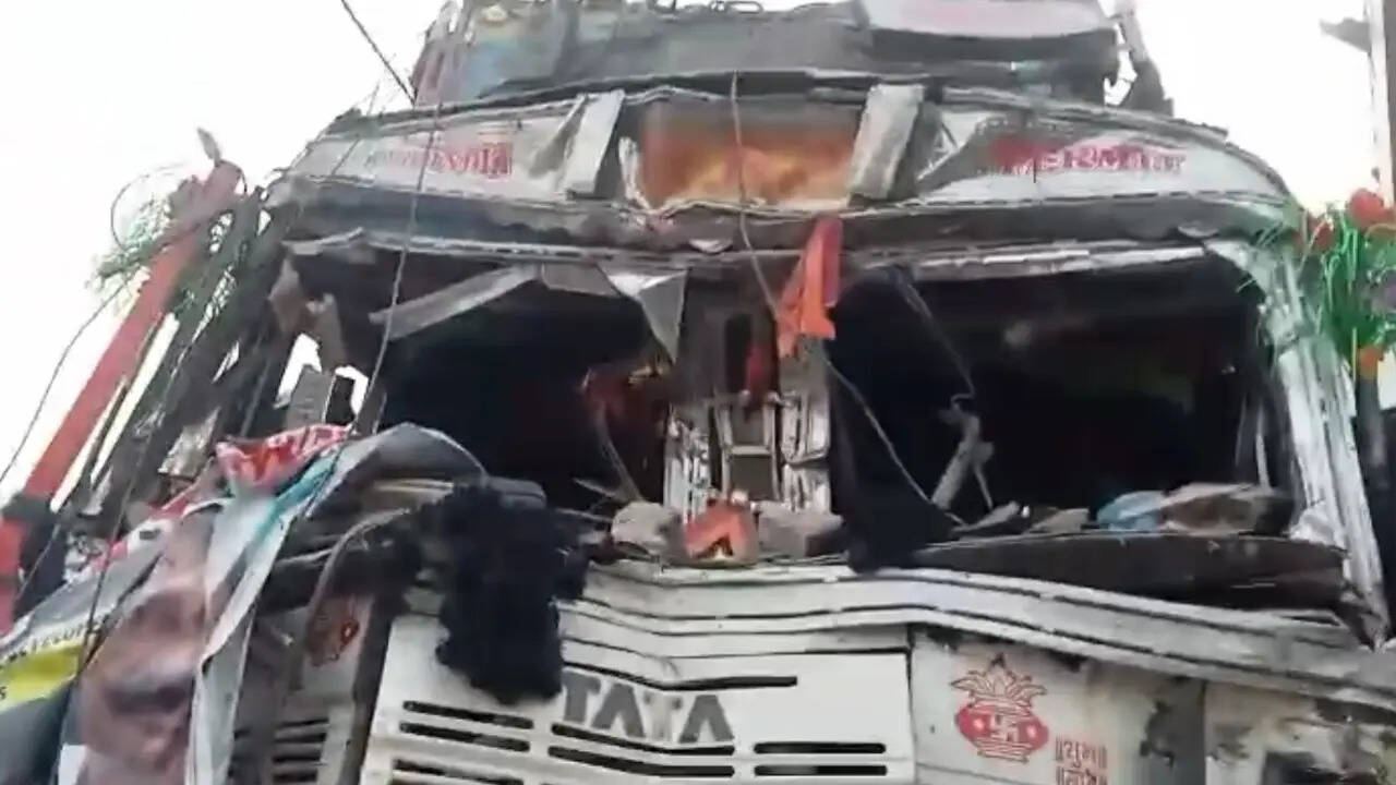 हादसे के बाद क्षतिग्रस्त हालत में ट्रक