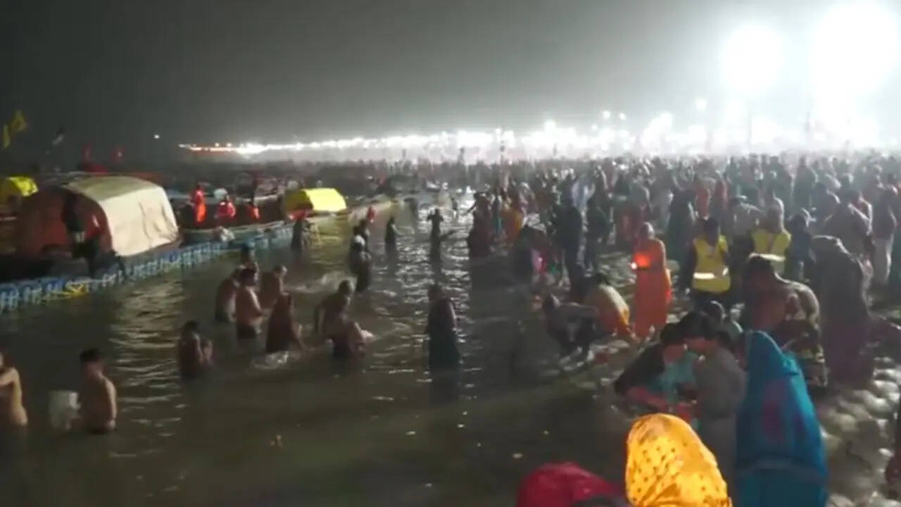 पौष पूर्णिमा पर प्रयागराज में स्नान करते श्रद्धालु (स्क्रीनग्रैब: ANI)