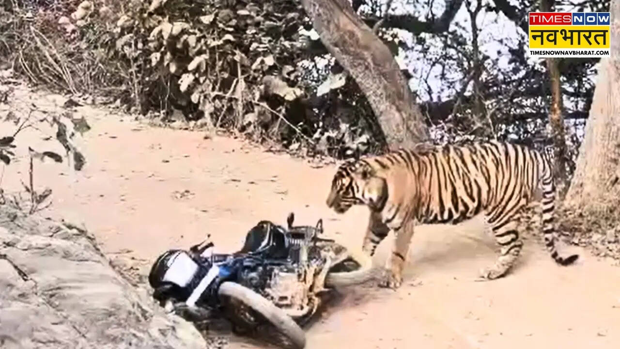 जानकारी के अनुसार, सोमवार सुबह रणथंभौर टाइगर रिजर्व की आरोपीटी रेंज के सुल्तानपुर वन नाके के अंतर्गत आने वाले गाड़ा डूब वन क्षेत्र में वनकर्मी निरंजन अपने साथ होमगार्ड जितेंद्र शर्मा के साथ बाइक पर गश्त कर रहे थे। इसी दौरान अचानक उनके सामने बाघ आरबीटी-2511 आ गया। बाघ को देखकर वनकर्मियों की सांसे थम गई और उनका दिल दहल उठा। वहीं, सामने बाइक पर सवार लोगों को देख बाघ भी आक्रामक हो गया। इस घटना का एक वीडियो भी सामने आया है, जिसमें बाघ को गिरी हुई बाइक के पास देखा जा रहा है।