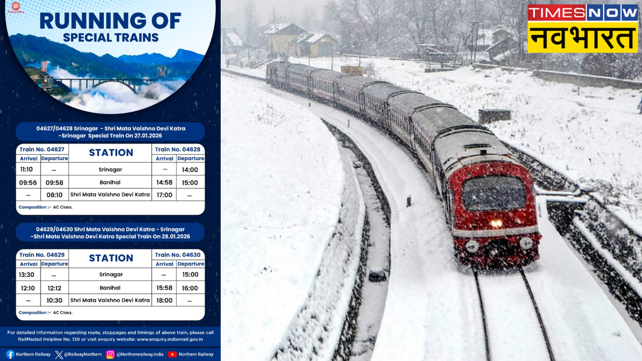 जम्मू-कश्मीर में जारी भारी बर्फबारी से जनजीवन बुरी तरह प्रभावित हो गया है। ऐसे हालात में उत्तर रेलवे ने राहत की पहल करते हुए विशेष एसी ट्रेनों के संचालन का फैसला किया है। माता वैष्णो देवी और कश्मीर के बीच रेल संपर्क को मजबूत करने के उद्देश्य से शुरू की गई ये ट्रेनें यात्रियों को सुरक्षित, सुविधाजनक और भरोसेमंद यात्रा का विकल्प उपलब्ध कराएंगी।