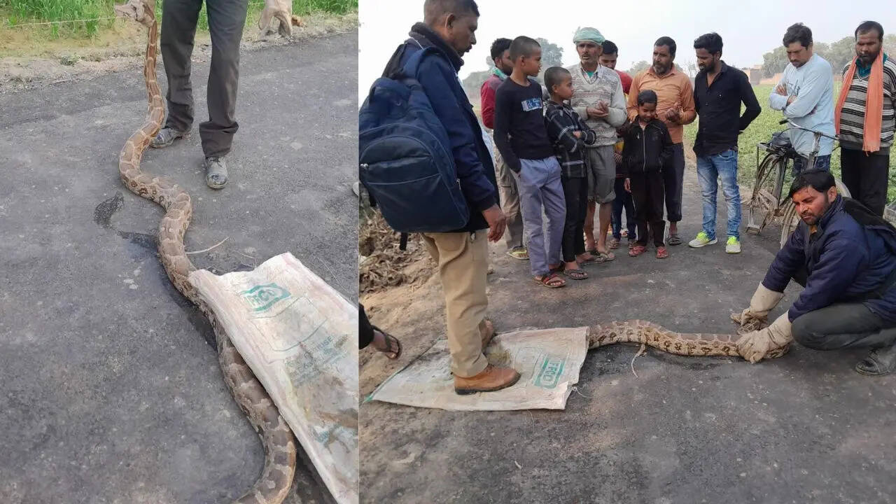Ajgar viral video: यूपी के हाथरस में खेत में धूप सेंकता मिला 15 फीट लंबा अजगर, गांव में मचा हड़कंप