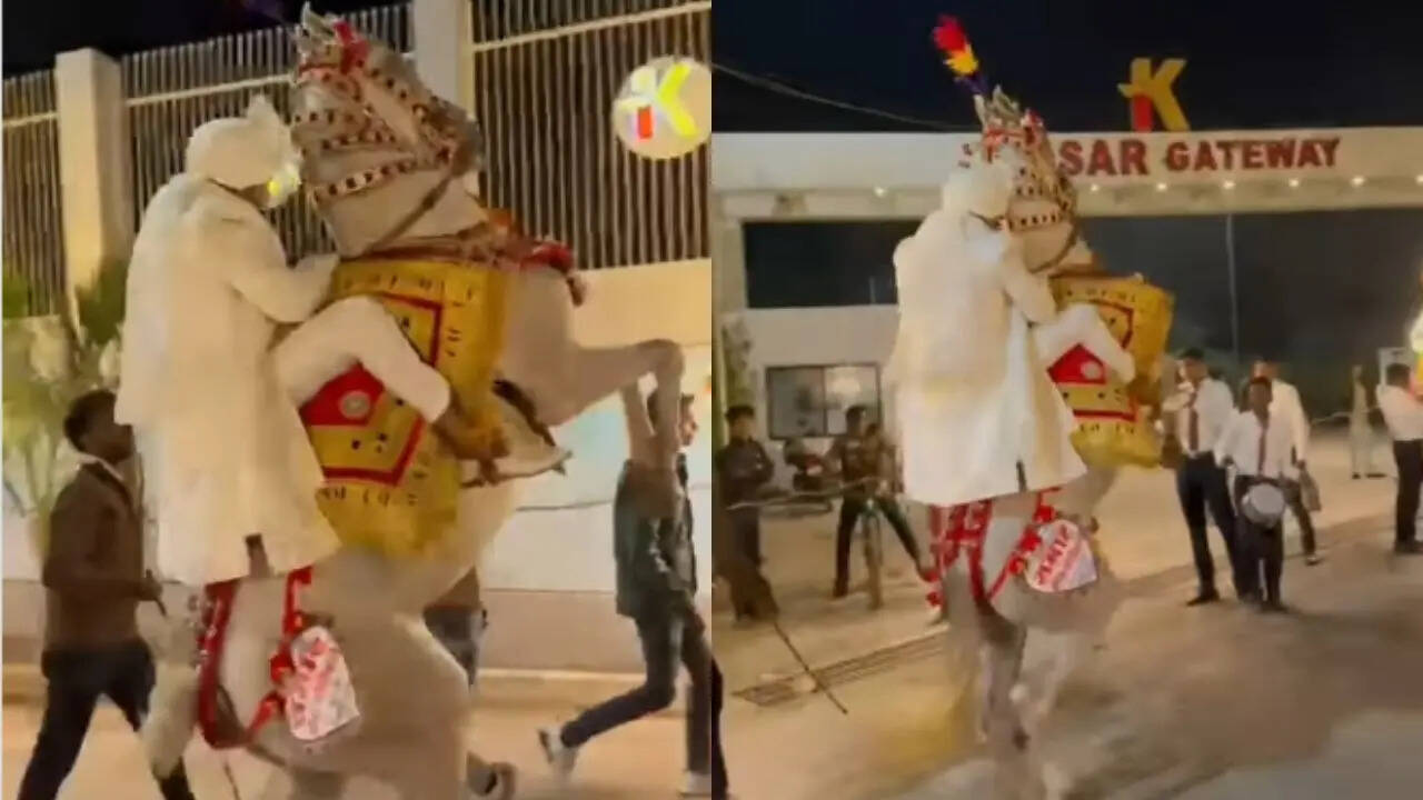 शादी का मौसम मतलब मस्ती का मौसम! उत्तर भारत में तो जैसे ही ठंड शुरू होती है, दूल्हों की घोड़ियां तैयार हो जाती हैं और बारातें सजने लगती हैं। लेकिन इस बार एक दूल्हा राजा तो घोड़ीचढ़े, लेकिन आज के बाद शायद ही वे अब कभी घोड़ी चढ़ने का नाम लेंगे। इस वीडियो को देखकर आप भी यही बोलोगे कि ये स्टंट था या फिर घोड़ी को किसी ने छेड़ दिया था।